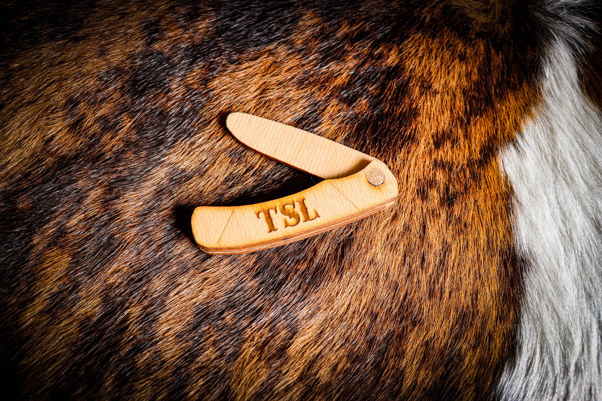 Crafted from natural wood, each knife can be custom engraved with up to 10 characters—whether it’s initials, a name, or a short word—making it a unique keepsake or gift.