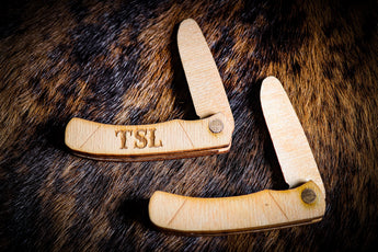Give your little cowboy or cowgirl a safe way to “carry a pocket knife” just like mom or dad! This wooden pocket knife is designed for imaginative play, with smooth edges and a lightweight feel perfect for little hands.