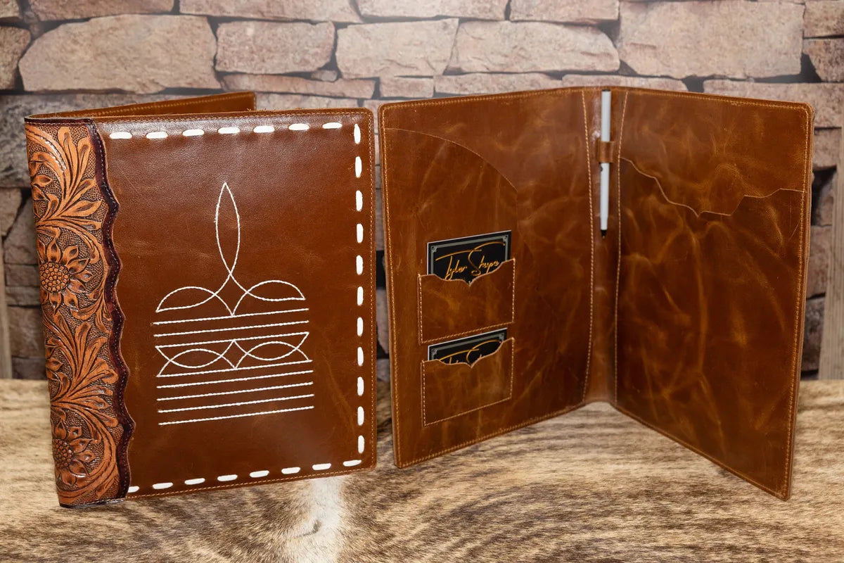 Laced Portfolio. This Leather Portfolio is the perfect combination of rugged and professional. This portfolio / planner will keep you organized and ready to take the job to the next level! Legal pad sized.