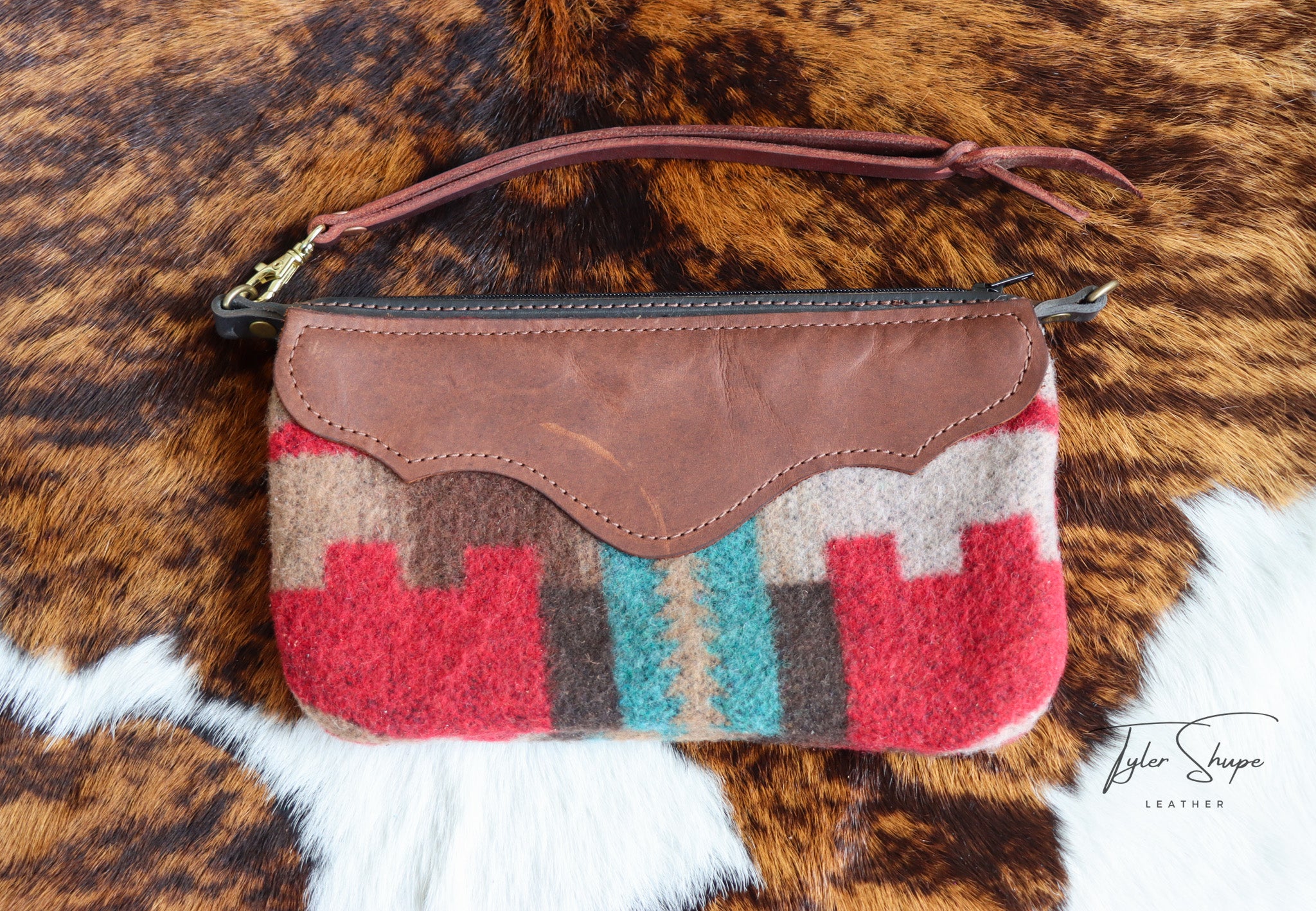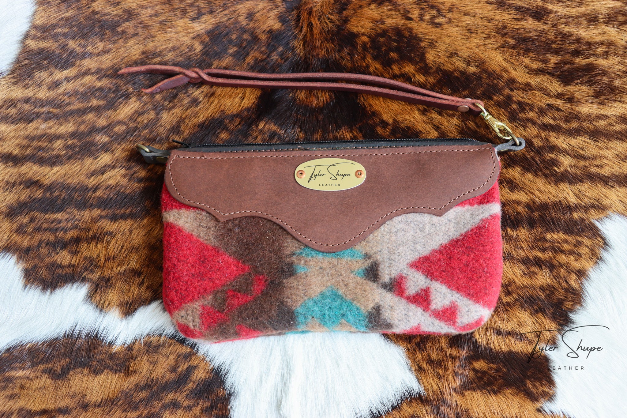 Explore the rugged allure of our Prairie Luxe Collection. Rustic charm on the go with our convenient wristlets. Curated for those who seek distinctive style on the frontier of fashion. Must -have unique accessory that transcends trends, celebrating the spirit of the wild west in every stitch. 132.Includes Crossbody strap