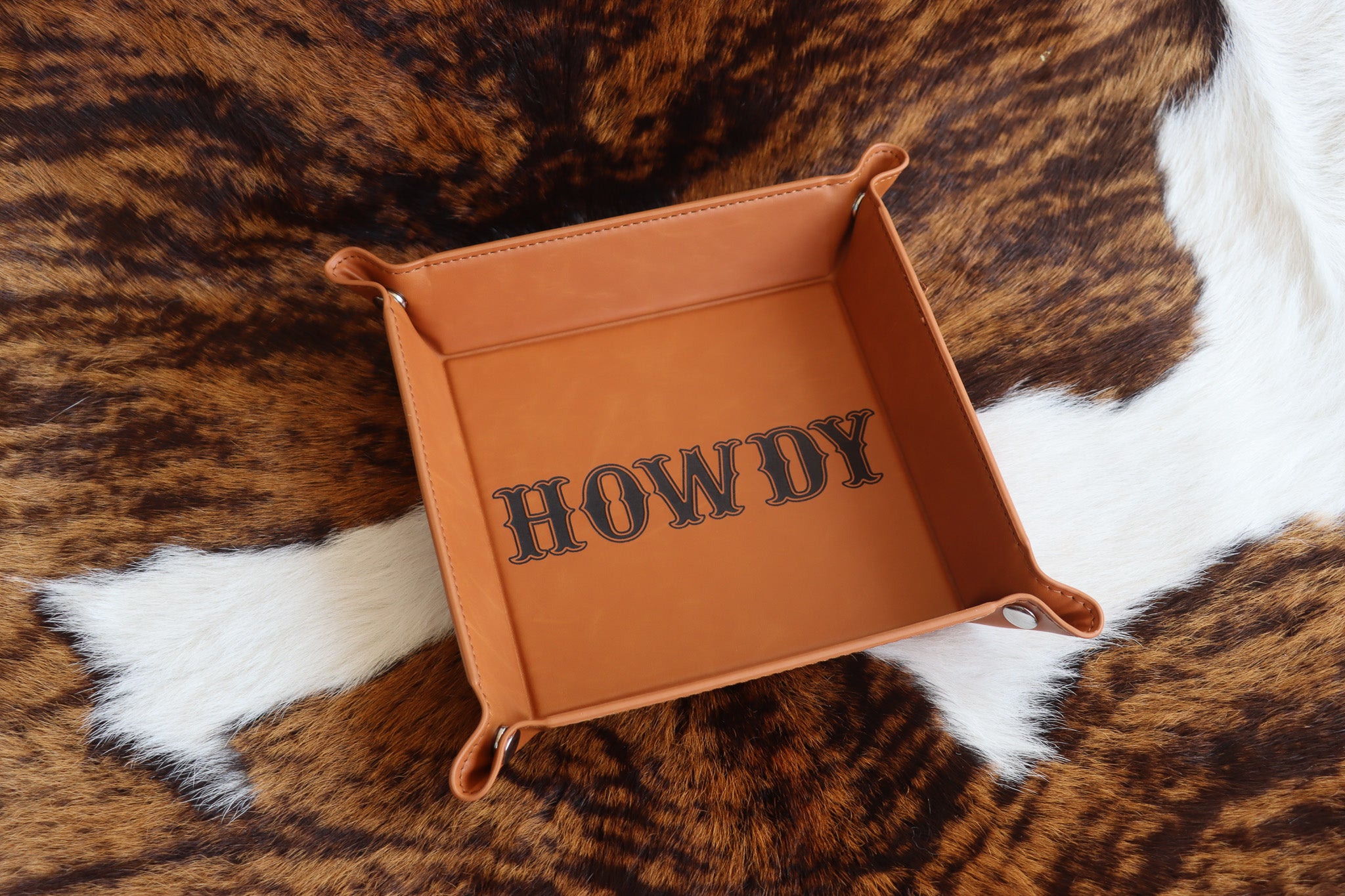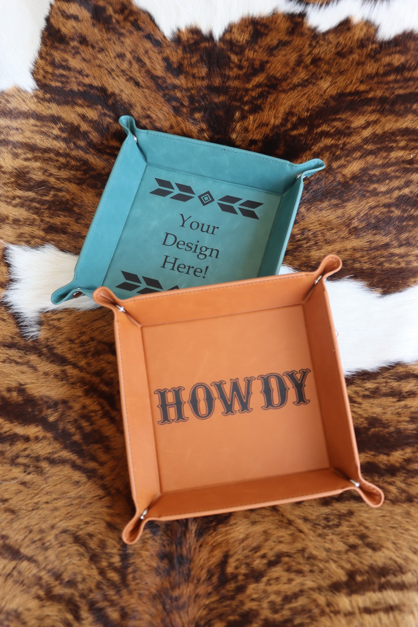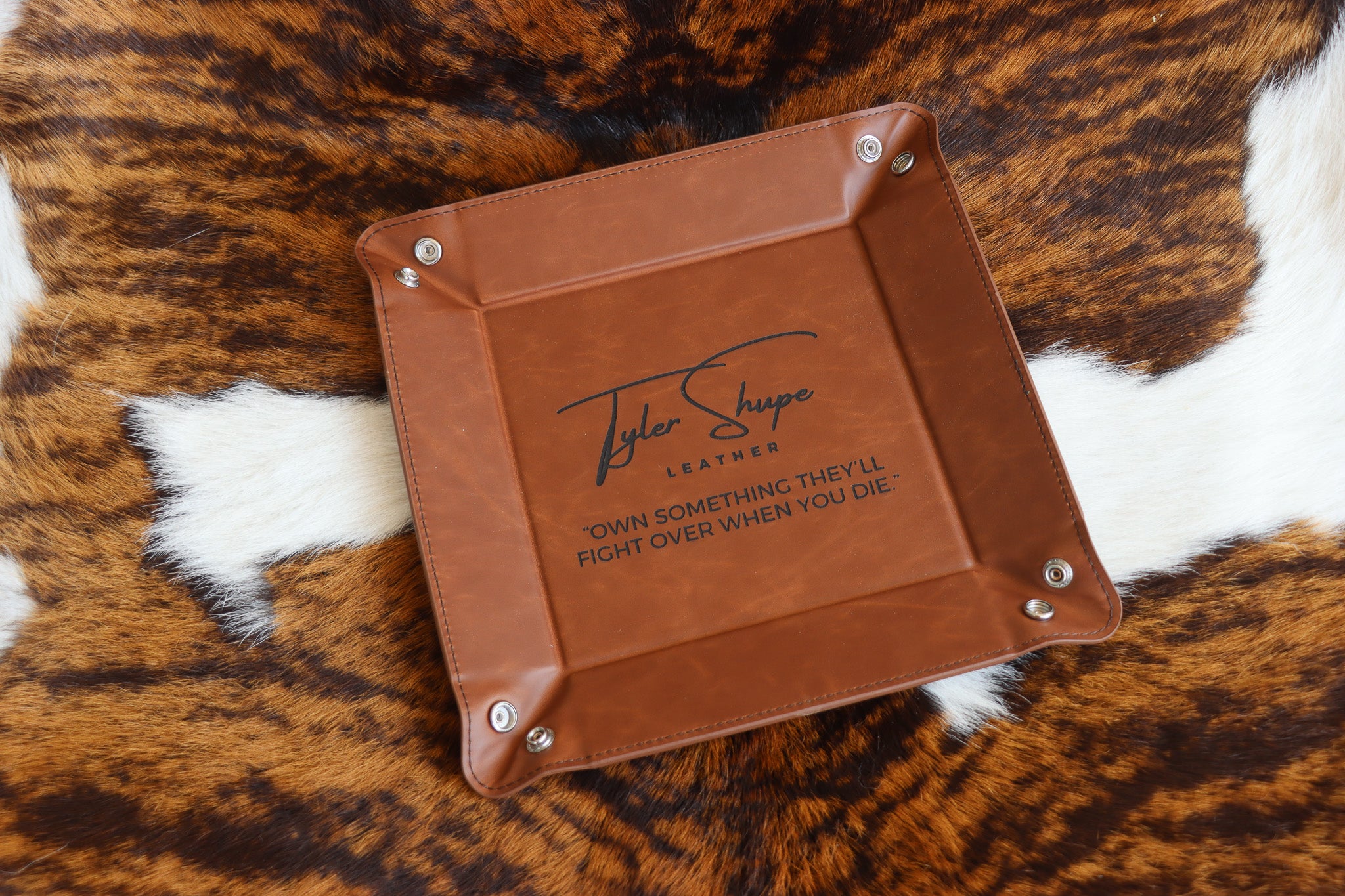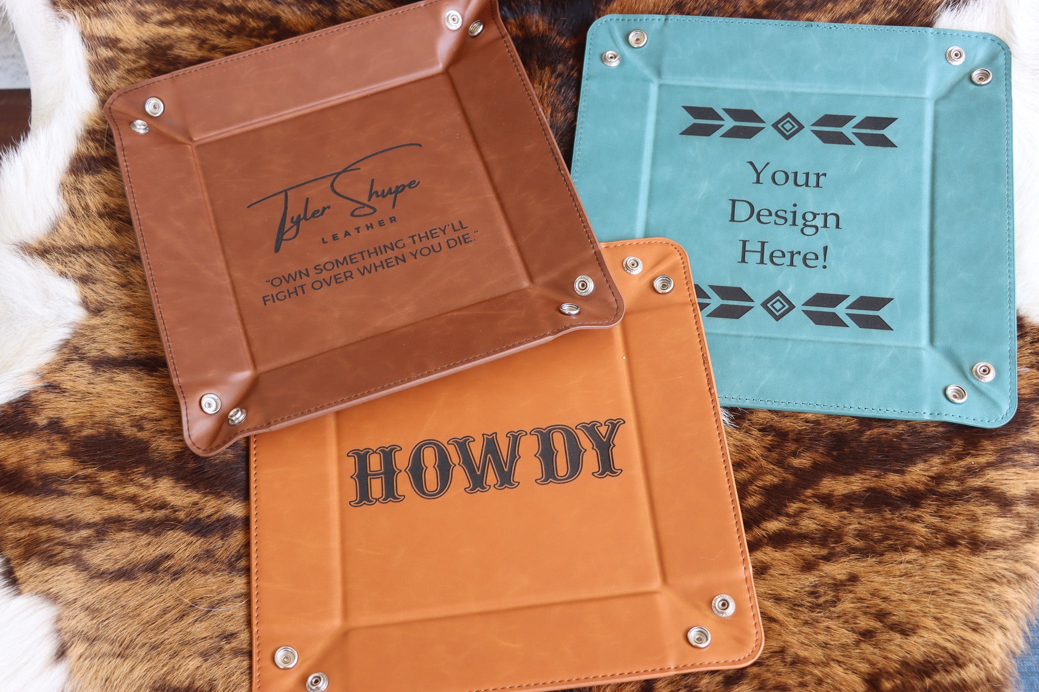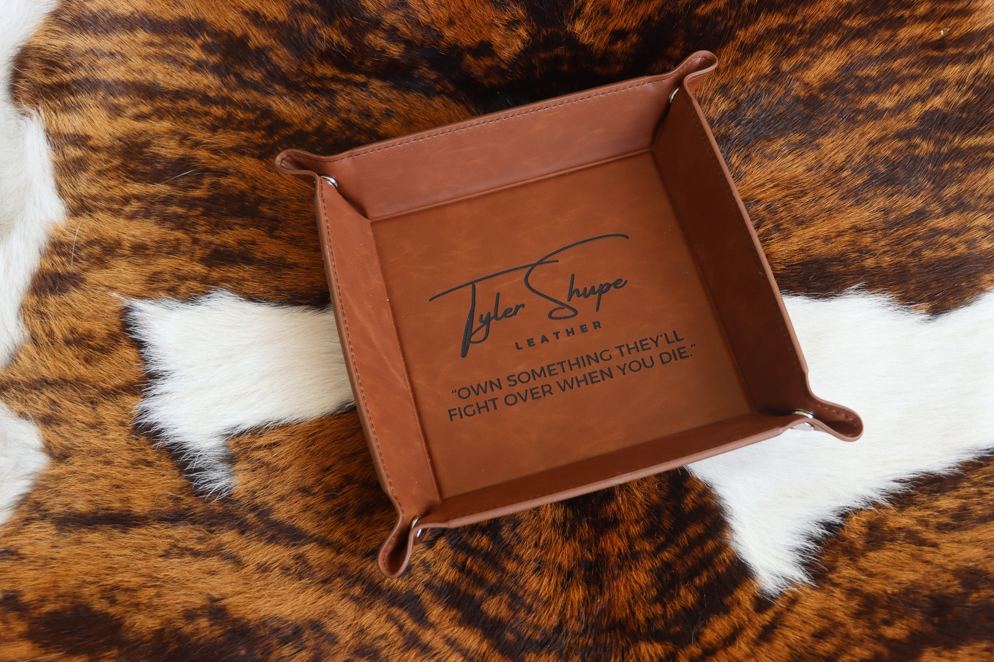 Engraveable. Valet Tray features a smooth, soft-touch faux leather cover and is perfect catching keys, pocket knives or keeping on your desk.
