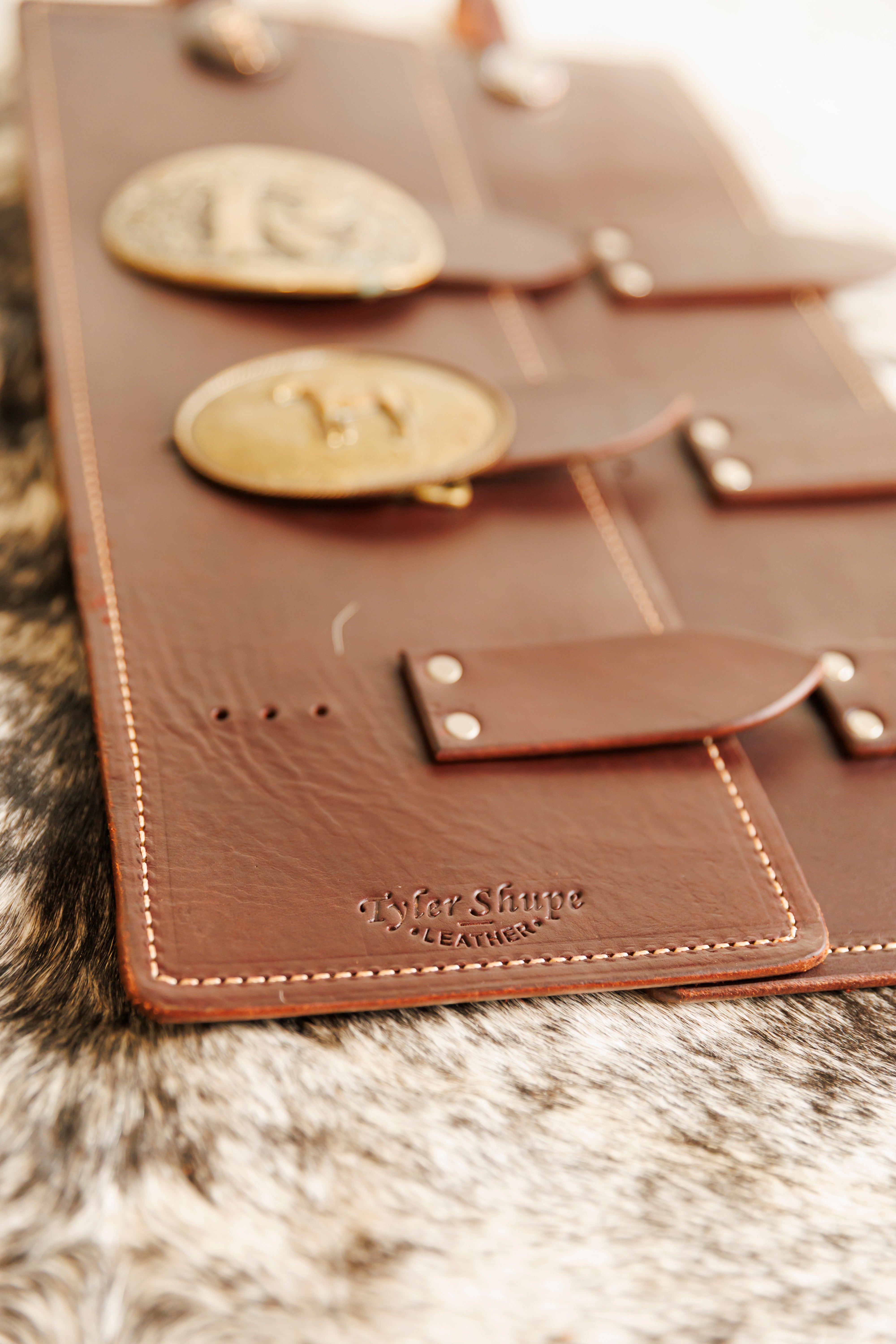Features : Western-style concho detail (customizable by request) Reinforced hanging D-ring Tyler Shupe Leather logo stamp High-quality leather construction with precision stitching Want a different look? Conchos can be swapped or customized to your preference.