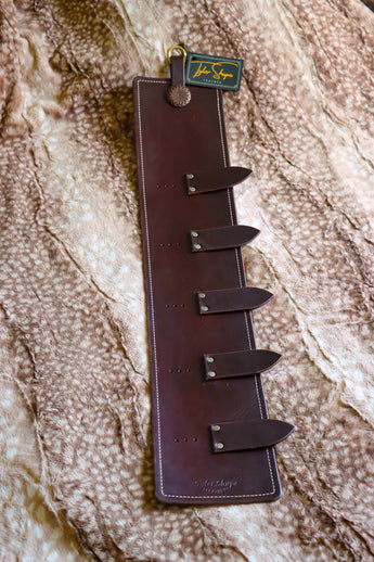 Make a statement with our 5-Buckle Leather Hanger — the ultimate way to display your buckle collection. Meticulously handcrafted, this hanger features five leather straps for buckle display, each double-riveted for added strength. With a tooled concho accent and durable D-ring, it’s as stylish as it is practical.