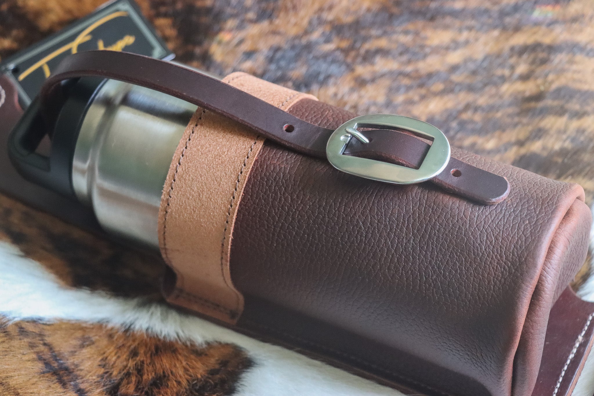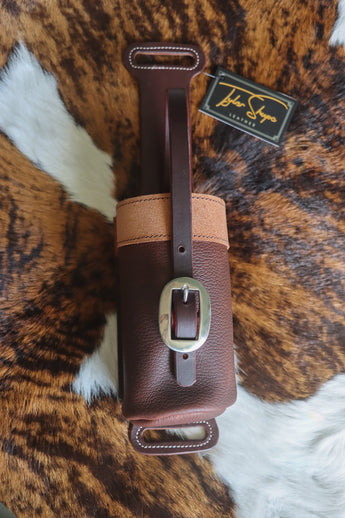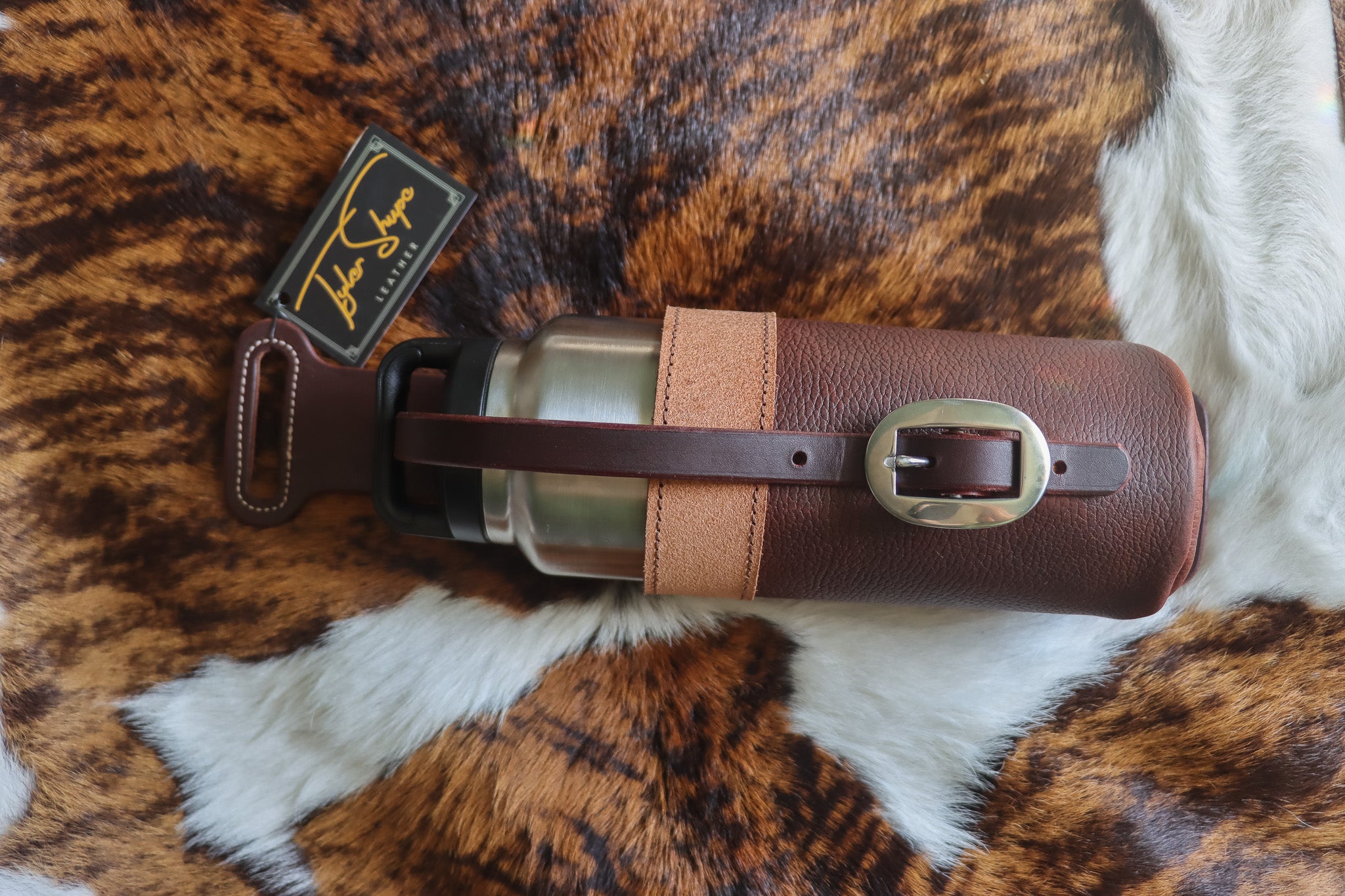 Leather Water Bottle Holder Stay hydrated in style with our handcrafted Leather Water Bottle Holder — built for riders, ranchers, and anyone who spends long days outdoors. Each holder is made from premium, full-grain leather with hand-finished details, sturdy stitching, and a classic western buckle closure. Easily attaches to your saddle, belt, or gear bag for hands-free convenience wherever you go. Designed to fit most standard water bottles, insulated tumblers, and thermoses. Choose from a variety of tooling styles, textures, and finishes to match your personal look.