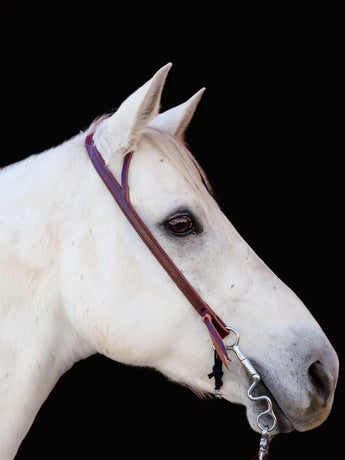3/4" Split Ear Headstall with decorative or solid stainless buckle. Dark Oil. A refined addition to any tack collection. Crafted with premium english bridle leather, doubled and stitched, this lifelong accessory ensures impeccable style and our trademark soft, supple, buttery feel.