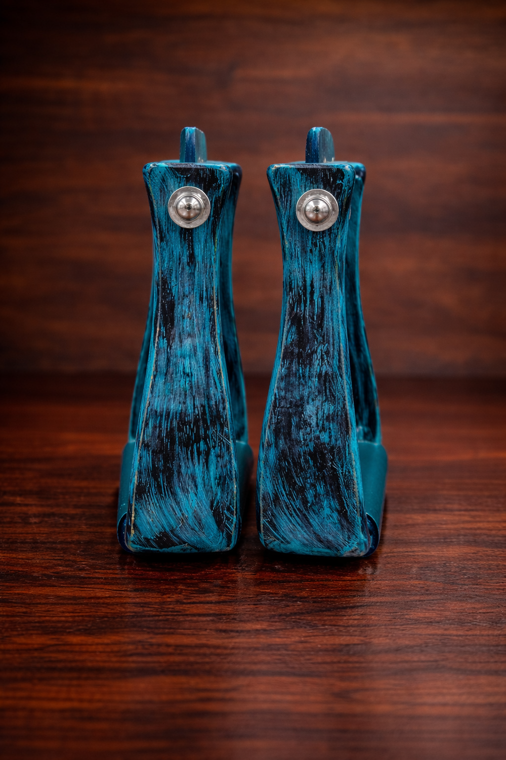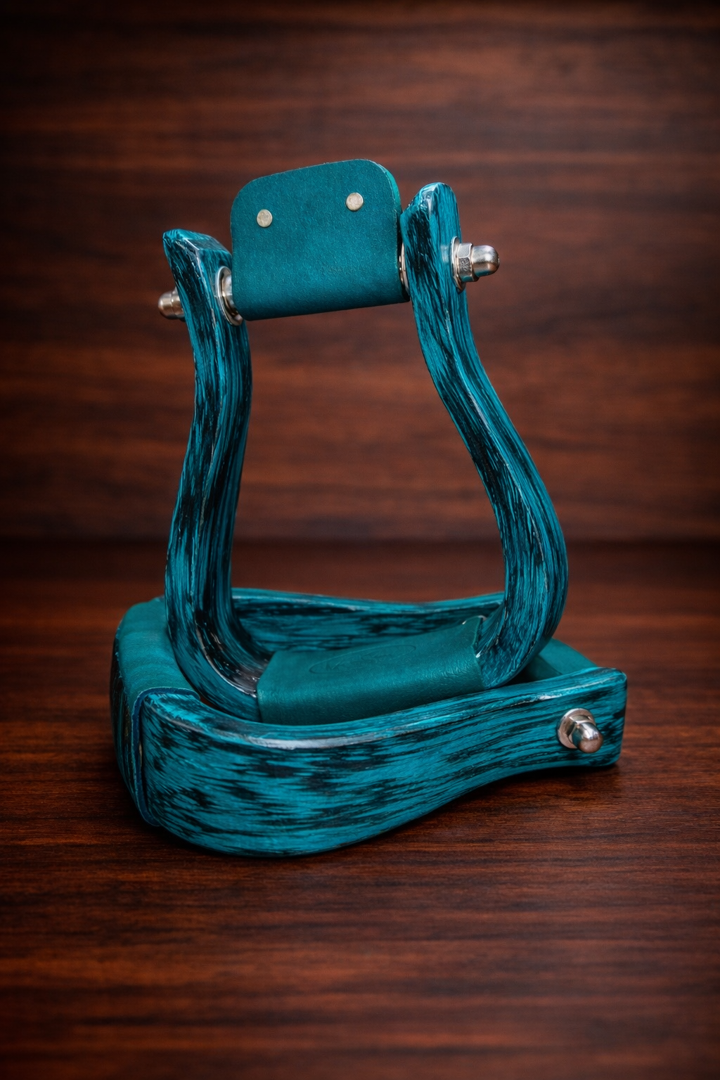 Distressed Turquoise Rosewood Stirrups – 2" Barrel & Youth Stirrups