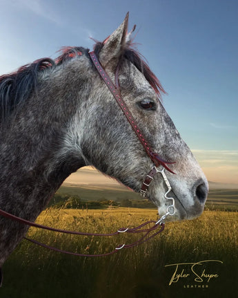 3/4" Split Ear Headstall with decorative or solid stainless buckle. Purple Buckstitch. A refined addition to any tack collection. Crafted with premium english bridle leather, doubled and stitched, this lifelong accessory ensures impeccable style and our trademark soft, supple, buttery feel.