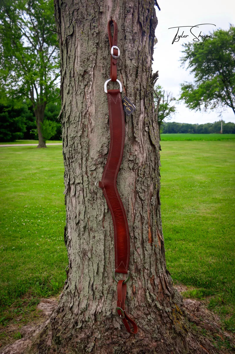 Steer Tripping Collar 2 7/8" Countoured. Herman Oak Harness leather. Double stitched. Latigo lined. Stainless steel hardware. 1 set 4" tugs. This Collar is the height of form meets function. Simple and elegant yet tough enough to take everyday abuse.
