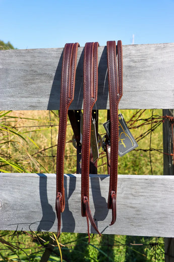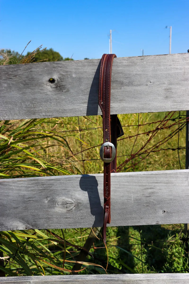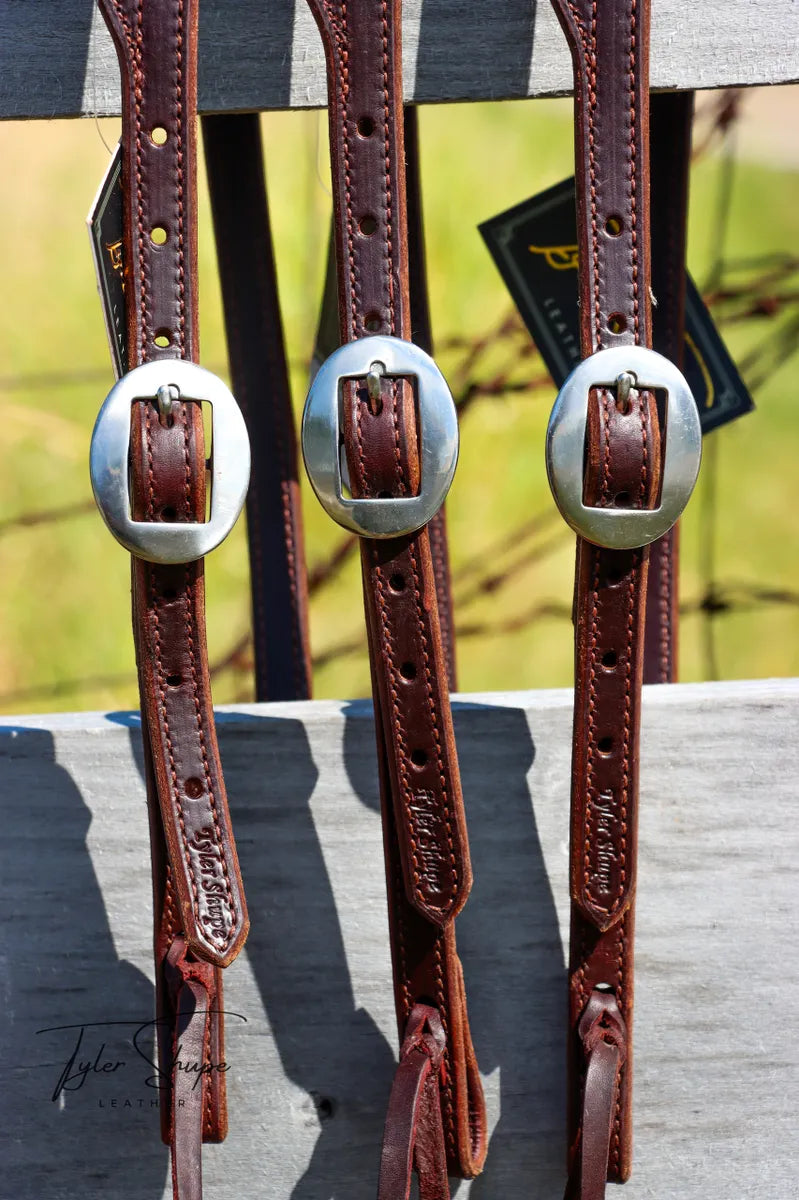 3/4" Headstalls with plain solid stainless buckle. All trainer headstalls will be smooth dark oil. A refined addition to any tack collection. Crafted with premium english bridle leather, doubled and stitched, this lifelong accessory ensures impeccable style and our trademark soft, supple, buttery feel. *NOTE* We can offer a deeper quantity discount depending on number needed.