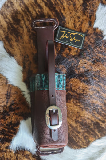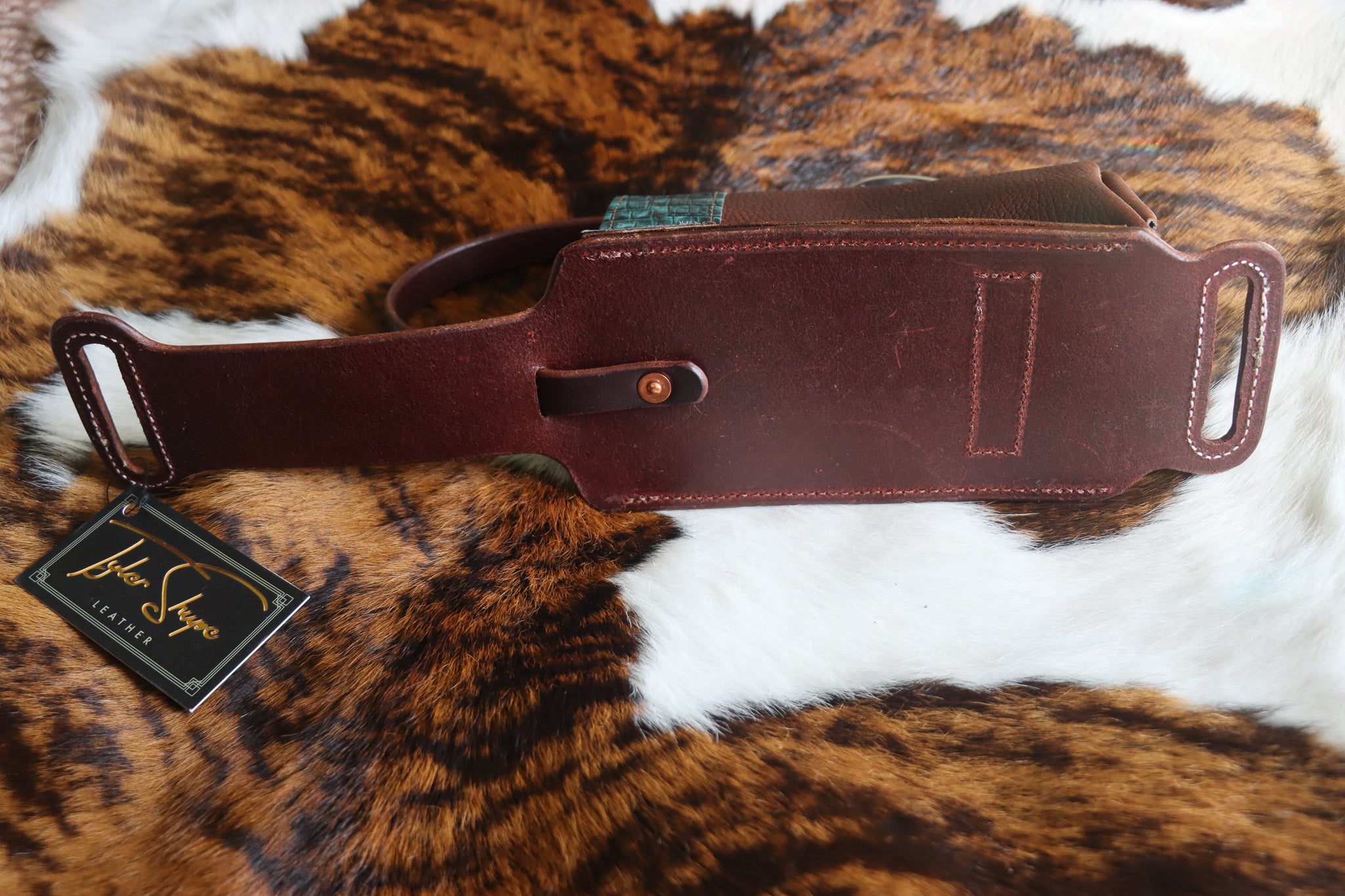 Features: Premium full-grain leather construction Adjustable western-style buckle strap closure Saddle slot and belt loop attachment Reinforced stitching for durability Hand-tooled and exotic leather accent options Tyler Shupe Leather branded tag Customization: Tooling, accent leather, and buckle styles can be customized by request