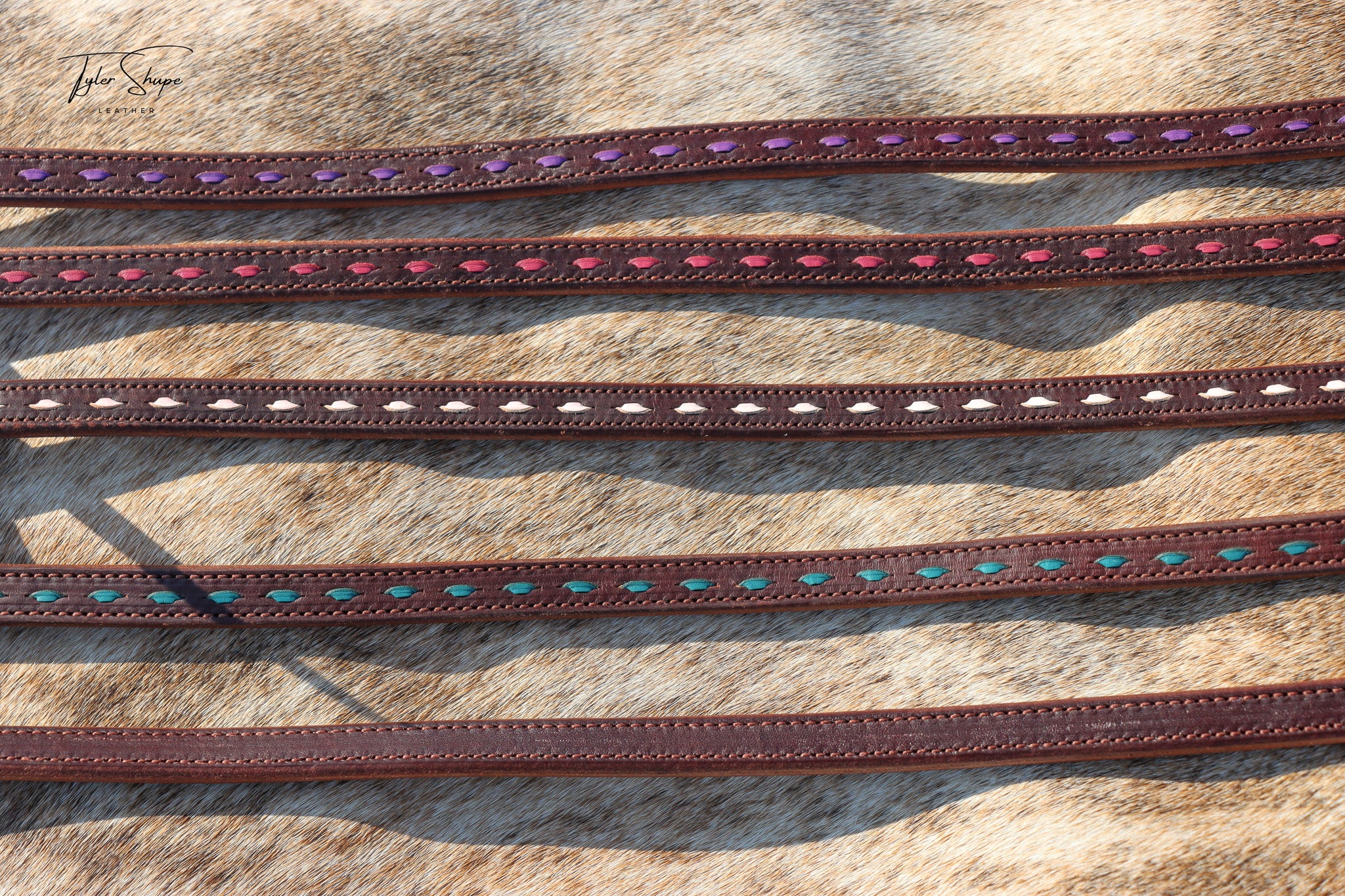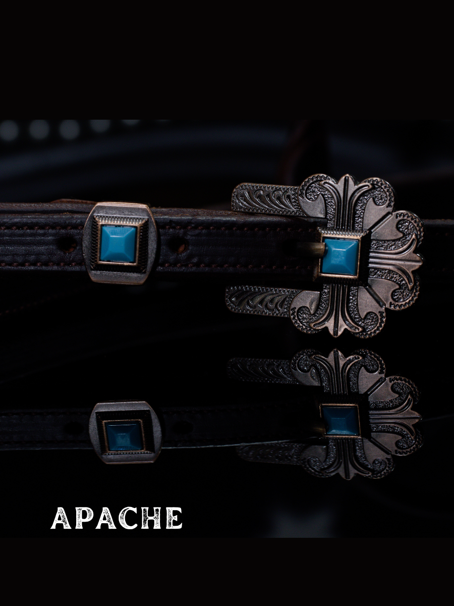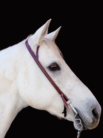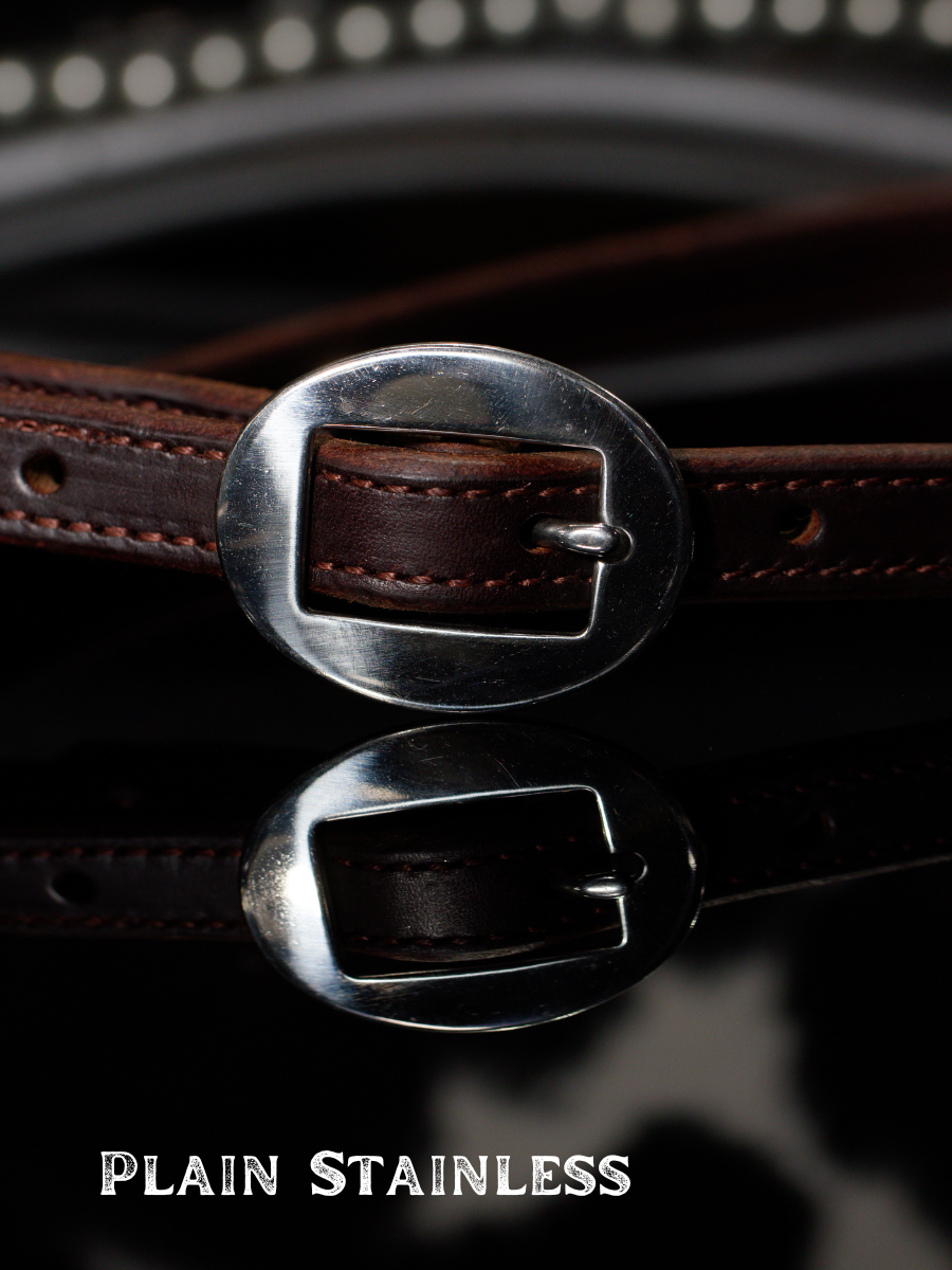 3/4" Split Ear Headstall with decorative or solid stainless buckle. White Buckstitch. A refined addition to any tack collection. Crafted with premium english bridle leather, doubled and stitched, this lifelong accessory ensures impeccable style and our trademark soft, supple, buttery feel.